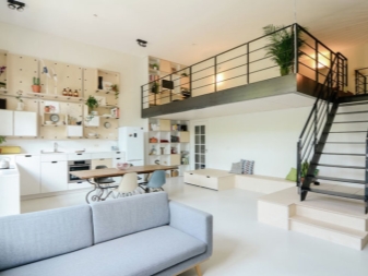 كقاعدة عامة ، في مثل هذه الشقق ، يوجد المطبخ وغرفة المعيشة والممر في الطابق السفلي وغرف النوم ومساحة العمل في الطابق العلوي..
