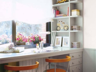 إذا كانت لديك هواية ، فلا داعي لإخفائها. على العكس من ذلك ، حاول تخصيص أكبر قدر ممكن من وقت الفراغ لعملك المفضل واستخدم كل ما تحتاجه لقضاء وقت ممتع كديكور. على سبيل المثال ، إذا كنت تقوم بالتطريز ، فعندئذٍ كقسم يفصل غرفة النوم عن منطقة الجلوس ، يمكنك استخدام رف مرتفع مع أدراج مثبتة عليه لتخزين كل ما تحتاجه..