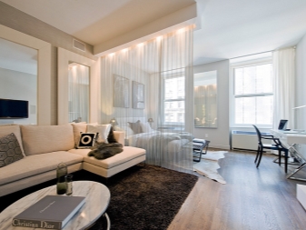 هناك العديد من الطرق لتقسيم مساحة المعيشة في غرفة واحدة إلى عدة مناطق وظيفية. من أجل هذا يمكنك استخدام لهجات الألوان أو الأثاث أو حتى الأقسام.