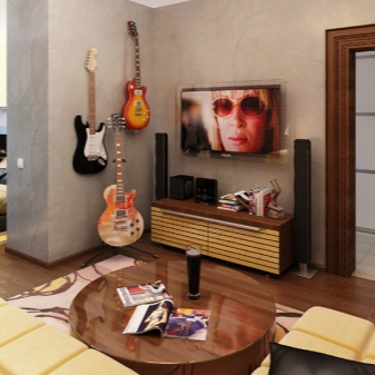 يمكن للموسيقيين أيضًا عرض هوايتهم لجميع الضيوف. يمكن تعليق الجيتار ، على سبيل المثال ، على الحائط ، ويمكن تثبيت آلة النطق على حافة النافذة ، بدلاً من شراء حامل خاص لها..