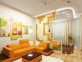 لهذا الغرض ، يمكنك حتى استخدام أقسام منخفضة. يمكن أن تكون هذه الجدران الزجاجية أو الخشبية أو الشاشات أو الستائر الملونة..