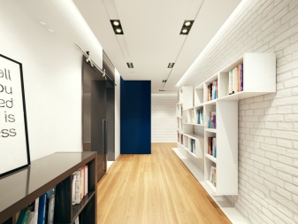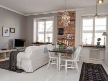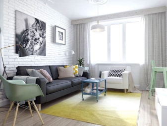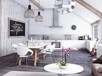 حتى لا يبدو الجو في الغرفة صارمًا بشكل مفرط, يجب الانتباه إلى لون المادة وخصائص الزخرفة. مثال على ذلك زخرفة الجدران بالطوب الأبيض ، تكملها بفعالية الألوان الزاهية والمبهجة..