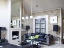 - غرفة المعيشة. يمكن أن يكون الجدار المزين بالمواد الموصوفة خلفية ممتازة للعناصر الداخلية الأخرى. لن تبدو أقل إثارة للإعجاب الموقد المبطن بالطوب الجصي المزخرف. وتجدر الإشارة إلى الأقسام المصنوعة من الزجاج المتنوع من المادة المعنية..