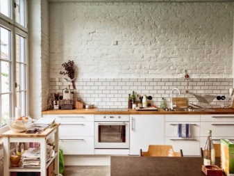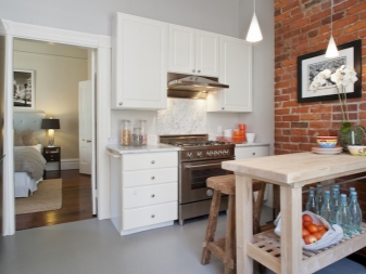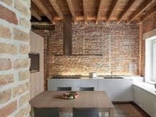 - مطبخ. يتيح لك استخدام الطوب تحديد المساحة ، على سبيل المثال ، من خلال إبراز مساحة طاولة الطعام. يعتبر بلاط القرميد من أفضل الحلول ، والذي بفضله يمكنك تزيين المريلة وإنهاء جزيرة المطبخ..