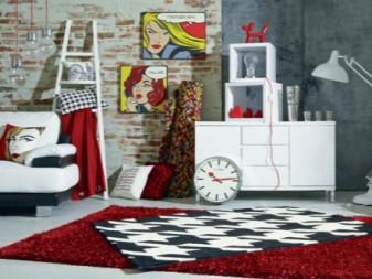 - فن البوب. السمة الرئيسية لهذا الزخرفة هي استخدام سلسلة غنية وفعالة تلعب على التناقضات. من الأمثلة الرائعة لتزيين غرفة فن البوب استخدام الطوب الأبيض قليلاً وأريكة مطلية بلون غني ونابض بالحياة. يمكن جعل هذا المزيج أكثر روعة من خلال لعبة مزخرفة ناجحة..