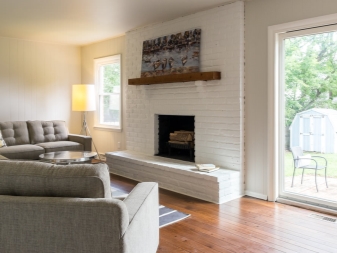 - تخصيص منطقة الموقد ، الأكثر ملاءمة لغرفة المعيشة.