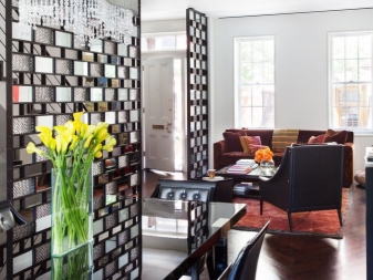 - زجاج. نوع الطوب المدروس – الشفاف وغير اللامع ، قادر على ملء أي غرفة بالضوء. مجموعة متنوعة من ظلال هذه المواد تستحق الاهتمام أيضًا ، وبفضل ذلك يمكن استخدامها بنجاح ليس فقط لتزيين الغرف ، ولكن أيضًا لتقسيم المناطق..