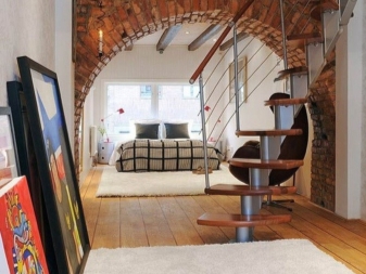- العلية. بالنسبة للغرف المزينة بهذا النمط ، يعتبر نوع الديكور المدروس عنصرًا أساسيًا. هذا يرجع إلى حقيقة أن التصميمات الداخلية العلوية كانت في الأصل تحتوي على جدران من الطوب. في الوقت نفسه ، يسمح التصميم الداخلي الحديث ، المصمم على هذا النمط ، بتقليد البناء الحقيقي..