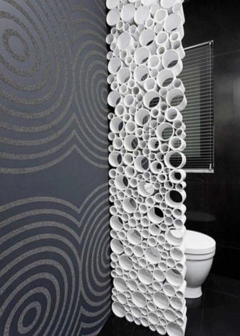 بالإضافة إلى ذلك ، من بين خيارات التصميم الأكثر اختلافًا ، يمكنك أيضًا العثور على نماذج غير عادية ، على سبيل المثال ، أقسام الأنابيب ، والتي غالبًا ما يفعلها السكان بأيديهم. تبدو مثل هذه الحلول كما لو أن المصمم الأكثر احترافًا قد عمل عليها..