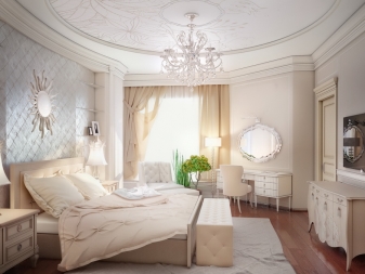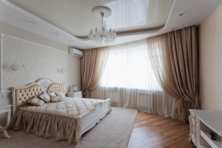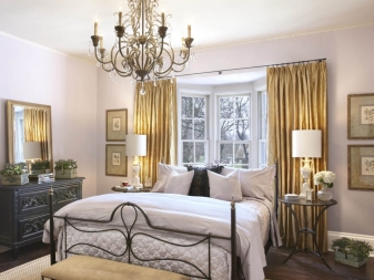 - تبدو غرفة النوم ذات النافذة الكبيرة جميلة بشكل خاص. يضيف هذا مزيدًا من الضوء إلى الغرفة ، مما يجعل المظهر الداخلي أعرض. سوف تتألق عناصر الديكور الكريستالية الهشة وتسحر أصحاب هذه الغرف. وبإضافة أشياء مظلمة إلى الغرفة ، ستبدو غرفة النوم أكثر تقييدًا ، ولكن ليس أسوأ بأي حال من الأحوال.
