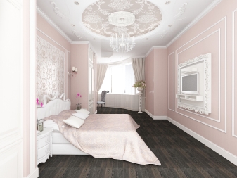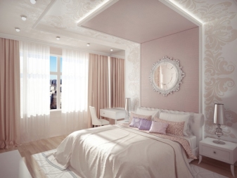 تعتبر ظلال اللون الوردي الفاتحة مثالية لغرف النوم. يمكن أن يكون وردي دسم ، أبيض-أرجواني ، وردة مدخنة. تضفي هذه الظلال على الغرفة سحرًا معينًا ، مما يمنح المضيفة السلام والهدوء..