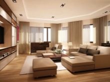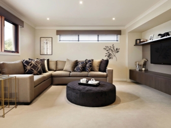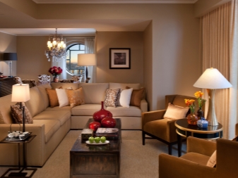 - يفضل اختيار ظلال خفيفة من الكاكاو والقهوة بالحليب والكراميل في غرفة المعيشة. هذه الألوان غير مزعجة ، لكنها تبدو شديدة الشدة. في مشروع تصميم ، يمكنك اللعب بالنغمات والظلال. باختيار مقياس كراميل خفيف ، يمكنك تزيين الغرفة بالمنسوجات أو الديكور في ظل القهوة بالحليب ، أو التركيز على الأثاث في ظل الكاكاو..