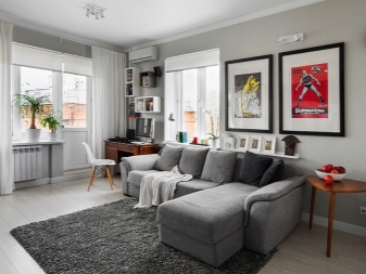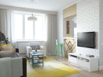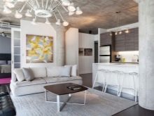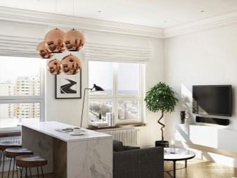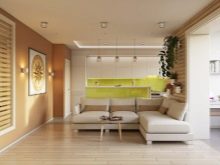 بالنسبة للإضاءة ، يوصي الخبراء باختيار وحدات الإنارة الكبيرة ذات الإضاءة الساطعة. يعتبر الحد الأقصى من الضوء واللون الفاتح هو القاعدة الأساسية للمصممين الذين يتعاملون مع الشقق الصغيرة..