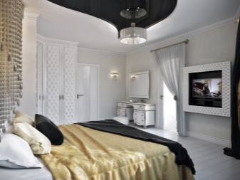 - في التصميمات الداخلية على طراز آرت ديكو ، كقاعدة عامة ، اللون الأبيض هو اللون الرئيسي. يمكن تخفيف هذا الجزء الداخلي بلوحة كلاسيكية بإضافة اللون الأسود إلى الغرفة. يمكن أن يكون ملصق أسود أو طاولة سوداء محاطة بأرائك بيضاء..