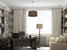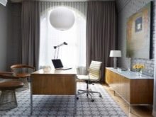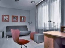 - عند تزيين المكتب ، يمكنك استخدام ظلال رمادية: فضية ، رماد. إنهم يمنحون الغرفة شدة ، مع ذلك ، لا تخلو من الهدوء والسكينة..