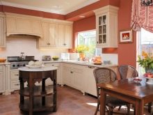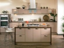 - سيكون الخيار المثالي للمطبخ هو مزيج من الظل البيج مع الكراميل أو مع نغمة من الحليب المخبوز. بالنسبة لمثل هذه الغرفة ، يعد هذا مناسبًا ، نظرًا لأن مزيج هذه الألوان يبدو فاتح للشهية وملونًا بدرجة كافية..