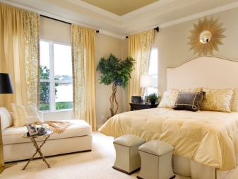 - تبدو غرفة النوم ساحرة بألوان البيج مع إضافة اللون الذهبي أو الشمبانيا. سوف يروق نظام ألوان مشابه لأولئك الذين يحبون أن يحلموا في العزلة ، وينغمسون في أحلامهم الخاصة..