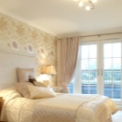 يمكن أن يكون ورق الحائط مع أي زخرفة ، ولكن بعد ذلك يجب أن تكون المنسوجات من نفس اللون لتجنب الفوضى. أو العكس.
