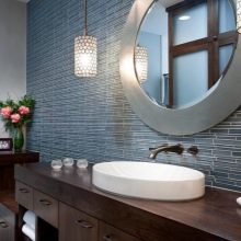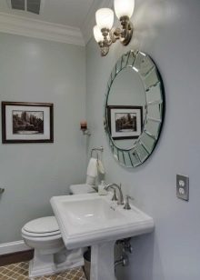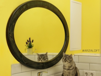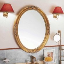 بالنسبة للمستقبل أو الاندماج المتقدم عالي التقنية ، فإن المرايا البيضاوية ذات الإطار ، ولكن بظلال خفيفة ، مناسبة أيضًا. لا يمكن أن يكون الإطار في التصميم الكلاسيكي المعتاد فحسب ، بل يمكن أن يكون أيضًا غير متماثل أو مصنوع يدويًا ، أي فريدًا وفريدًا تمامًا.