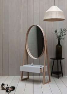 بالنسبة لغرفة النوم ، فإن النموذج البيضاوي مناسب أيضًا. ستشغل هذه المرآة مساحة صغيرة ، لكن في نفس الوقت ستكون قادرة على إظهار مالكها بنمو كامل. تضيف الأشكال الدائرية الأناقة والرقي إلى الديكور الداخلي. يمكن وضعه فوق طاولة السرير بحيث يمكنك في أي وقت النظر إلى نفسك وارتداء الملابس. يمكن أن تكون المرآة على أرجل ، وتقف على خزانة ملابس أو منضدة الزينة ، ولا تعلق على الحائط. ستضيف هذه التقنية راحة إضافية إلى غرفة النوم..