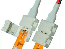 في مثل هذه الحالة ، هناك حاجة إلى الموصلات. سيوفرون سرعة عالية للتجميع مع بساطته. الموصل عبارة عن “مصيدة” بلاستيكية يتم فيها إدخال طرفي شرائح شريط LED ثم يتم وضعهما في مكانهما. تم إغلاق جهات الاتصال الموجودة داخل الموصل ، ويمكن أن يعمل الشريط ككل. هناك ثلاثة أنواع من الموصلات في السوق: