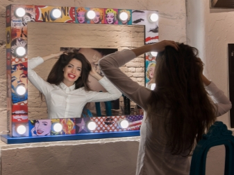 بفضل مجموعة متنوعة من معدات الإضاءة في المتاجر ، هناك مئات الطرق لإنشاء مثل هذه المرآة بيديك دون دفع مبالغ زائدة. بالطبع ، يمكنك عمل إطار خاص ، وحفر ثقوب فيه لقواعد ، وشراء الأسلاك والمصابيح الكهربائية ، ثم توصيل الكهرباء ، وتجميع الهيكل بأكمله. هذا الخيار مكلف للغاية ، وقد لا يكون لدى الشخص الوقت الكافي للعبث بكل هذه المراحل..