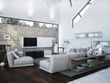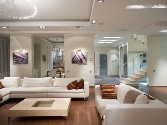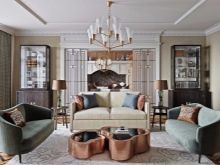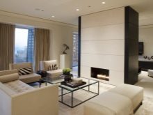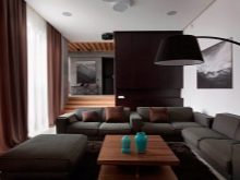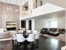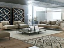 تتميز غرفة المعيشة الحديثة بوظائفها. اليوم ، غالبًا ما تستوعب ضيفًا ومدفأة ومنطقة لتناول الطعام ، مما يجعلها مريحة ومضيافة. عنصرها الأساسي في التأثيث هو مجموعة من الأثاث المنجد ، بما في ذلك أريكة خطية أو زاوية ، والتي ، إذا كان هناك مساحة ، يمكن أن تكون معيارية وكراسي بذراعين ناعمة أو أرائك وطاولة قهوة ، والتي يمكن أن تكون اليوم أيضًا وسادة (على سبيل المثال ، مع تنجيد جلدي وتخفيف السطح).