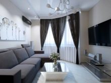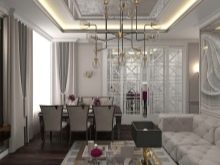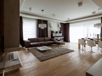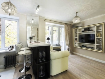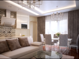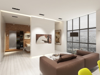 اليوم ، تحتوي هذه المشاريع على العديد من النوافذ ، وتعتبر النوافذ البانورامية ذات صلة بشكل خاص. يتم تقسيم المساحة عن طريق الأثاث الموجود ، والحلول الحالية هي الاختلاف في ارتفاع السقف ، ووجود أقواس بين المناطق الوظيفية المختلفة للشقة ، وخلط أنسجة أسطح الجدران والأرضية ، وتناقضات انتقالات ظلال الألوان.