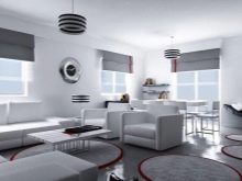 لن يتم استخدام هذا النمط في فضاء الأشياء العشوائية. كل شيء يخضع للراحة ، مع التركيز على الفضاء وإنجازات التقنيات الجديدة. غالبًا ما تكون الجدران في النمط أحادية اللون أو مطلية أو مُلصقة بورق حائط باللون الرمادي أو البيج أو مع لمعان معدني. عوارض السقف المقلدة والزجاج والمفروشات المصنوعة من الفولاذ المقاوم للصدأ والبلاستيك – عناصر التصميم الرئيسية.