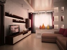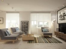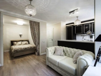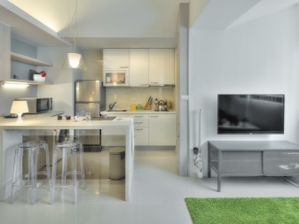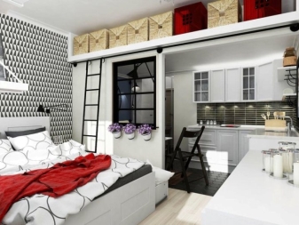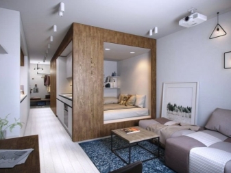 الأثاث المختلف مرحب به ، والأثاث القابل للتحويل والتكنولوجي (على سبيل المثال ، طاولة السرير) موضع تقدير خاص. لا توجد ممرات في هذه المساحة ، كل سنتيمتر مربع متضمن بأكبر قدر ممكن من الكفاءة.