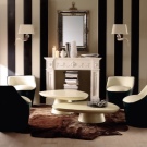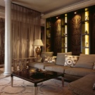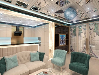 يتم توفيره من خلال وفرة الضوء ، والاستخدام في ترتيب الأسطح باللمعان والورنيش واستخدام المنسوجات باهظة الثمن والتباين في ظلال الألوان.. يؤكد منظر الغرف على موضوع النادي: بلاط السيراميك وألواح الباركيه تستخدم في زخرفة الأرضية ، والسقف مزين بالذهب ، وغالبا ما يجعلها داكنة.