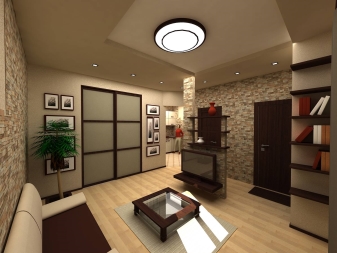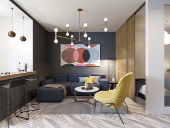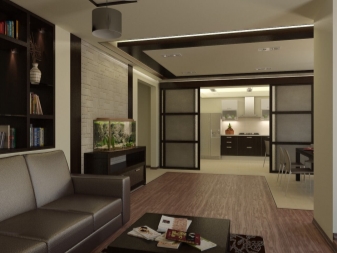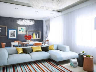 بالإضافة إلى تقسيم المناطق ، هناك تقنية مثيرة للاهتمام وعصرية تجمع الآن بين الغرف. يتيح لك استخدام المساحة إلى أقصى حد ، مما يتيح مساحة للرحابة..