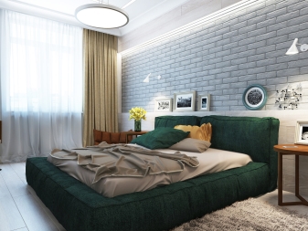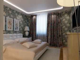 غالبًا في تصميم الغرفة ، يتم استخدام خطوط مجعدة للسقف ، وإضاءة حائط إضافية ، وبفضل ذلك يمكنك قراءة كتاب قبل الذهاب إلى السرير. الإضافات العصرية هي الوسائد وطاولات السرير مع الطاولات الجانبية ومنضدة الزينة. مطلوب فراش حريري ومفرش سرير جميل.