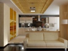 الأثاث الخشبي مع المفروشات الجلدية غير مقبول. الأرضية مزينة بالبلاط ، والمشمع والصفائح ، والجص أو التعريشة مع طباعة هندسية تستخدم للجدران. يجب أن يكون السقف من عدة مستويات ، والأثاث – الميزانية ، مع مراعاة بيئة العمل. ديكور هذه الغرف عبارة عن أجهزة منزلية ، والنغمات الرئيسية هي ظلال محايدة مع تباينات مشرقة (بيج + أخضر ، رمادي فاتح + نبيذ).