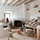 رحب إهمال طفيف وتقليد الحرف اليدوية. في الوقت نفسه ، يجب أن تكون المنسوجات المستخدمة طبيعية وخفيفة ، ويجب أن يكون الأثاث حصريًا ذو علامة تجارية ومصقول ويتميز بأشكال ناعمة. الأرفف والطاولات المنزلقة لها الأولوية ، ولمسات الديكور عبارة عن وسائد مرقعة ونقوش ملونة وتقليد للجدران البالية.
