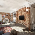 هذا تفسير لبيئة الاستوديو الخاصة للطبقة الإبداعية في المجتمع ، والتي تتميز بالرحابة وجو من الفوضى الإبداعية. في مثل هذه الشقق لا توجد شرفة أو لوجيا ، ويقع المطبخ بالقرب من المدخل ، وتقع منطقة الضيف (النوم أيضًا) بالقرب من النافذة.