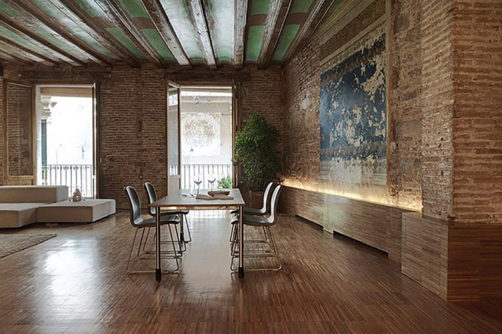 علاوة على ذلك ، في الاسلوب تطلب أثاثًا منجدًا باهظ الثمن ، واستخدام مرايا ومعدات باهظة الثمن, يتوافق مع آخر التطورات الجارية. الأقسام ليست غريبة على الدور العلوي: تتميز بتصميم مفتوح ، سقف مرتفع ، جدران جصية خشنة ، أعمال قرميدية ، خرسانية.