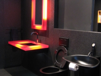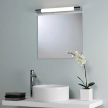 ستبدو المرآة ذات الإضاءة المدمجة أو نماذج الحائط أصلية في الحمام. ستساعدك المصابيح الموضوعة جيدًا على الترتيب ، على الرغم من الرطوبة العالية في الغرفة. الخيار الشائع هو استخدام شريط LED ، والذي يقع على طول محيط اللوحة القماشية..