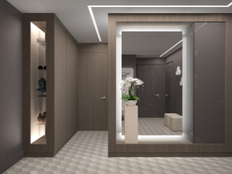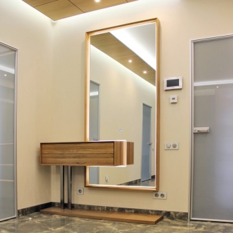 المرآة الموجودة في الردهة هي رابط رئيسي في الداخل. يقرر الكثير من الناس شراء لوحات كبيرة ، على طول محيطها توجد إضاءة خلفية. سيكون لمثل هذا الحل عنصر عملي ، حيث سيتمكن كل شخص بمساعدته من تقييم مظهره وترتيب نفسه. بفضل الإضاءة الخلفية ، يمكنك التأكيد على هذا المنتج وإضفاء جاذبية وأصالة على الجو..