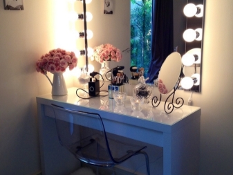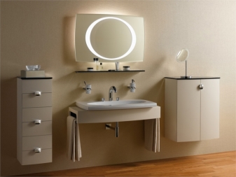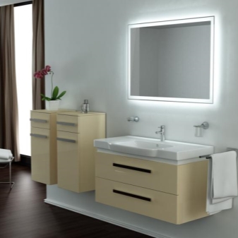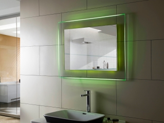 يمكنك ترتيب الإضاءة باستخدام المصابيح الموجودة في الجزء العلوي من الإطار أو على الجانبين. تحظى النماذج المضاءة من ثلاث جهات بشعبية. إنهم يخلقون الإضاءة المناسبة لعلاجات التجميل والنظافة. انعكاس هش يسمح بتطبيق كريم الأساس بشكل صحيح على الجلد.
