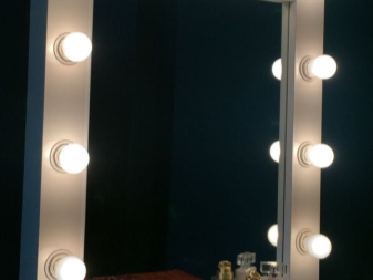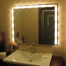 إذا أخذنا في الاعتبار نوع الإضاءة الزخرفية ، فإن اللوحات المرآة ذات الإضاءة هذه ليست مثالية. تفي المصابيح المستخدمة في هذا الإصدار فقط بالمكون الجمالي ، لذلك لا يوجد ضوء كافٍ منها. يتم تثبيت لوحات المرآة هذه فقط كديكور. سيكون الاعتناء بنفسك بمساعدتهم أمرًا غير مريح..