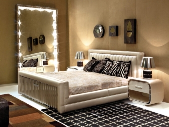 في غرفة النوم ، يمكنك تجهيز مرآة على منضدة الزينة بإضاءة ، أو يمكنك شراء قماش على ارتفاع الشخص. في مثل هذه البيئة ، ستؤكد الإضاءة الخلفية على حميمية الغرفة ، وتساعدك على الاسترخاء والراحة من يوم حافل..