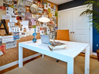 لذلك ، غالبًا ما تستخدم الزخرفة وورق الحائط والجص المحكم والكتل الزجاجية وورق الحائط للصور بالإضافة إلى الجص المقلد لألواح الجدران. يمكن استخدام البطانة أو الخيزران لتكسية الجدران. يعمل الفلين ليس فقط باعتباره المادة الرئيسية ، ولكن أيضًا كعنصر منفصل ، يمكن إرفاق الوصفات في المطبخ أو الرسومات في مكان العمل بألواح الفلين.