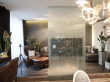 بالنسبة للأقسام ، غالبًا ما يتم استخدام الحوائط الجافة ، بالإضافة إلى خيار ممتاز هو الألواح الزجاجية ، قماش الشاش وأنواع أخرى من المواد.