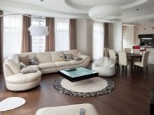 أكثر التصميمات الداخلية شيوعًا للشقة العادية هي الخيارات التي تجمع بين العديد من المجالات الوظيفية. لذا ، فإن الخيارات الحقيقية المثيرة للاهتمام لمجموعات المطبخ وغرفة الطعام والمطبخ وغرفة المعيشة وغرفة المعيشة وغرفة الطعام وغرفة المعيشة وغرفة النوم تحظى بشعبية كبيرة..