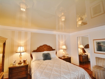 لزيادة الحجم ، يمكن تضمين الأثاث ذو الواجهات اللامعة في الأثاث ، كما يمكن أن يؤدي انكسار الضوء من الأسطح إلى تكبير الغرفة بصريًا. يمكن تحقيق نفس التأثير عند استخدام سقف ممتد خفيف لامع.