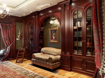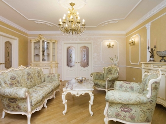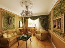 أنظمة الألوان الأكثر شيوعًا: الذهب ، بورجوندي ، البني ، الزمرد ، الأزرق ، الأسود ، الأبيض. يتم استخدام الأثاث بشكل كبير ، كما هو الحال بالنسبة لأثاث الخزائن ، فهو عادة ما يكون مصنوعًا من الخشب الطبيعي. تحظى الماهوجني والبلوط بشعبية كبيرة ، وتبدو الأغلى ثمناً وتوفر عمر خدمة طويلاً..