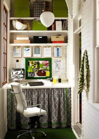 إذا كان لديك تحت تصرفك غرفة صغيرة تم الحصول عليها من مخزن أو شرفة ، فأنت بحاجة إلى ترتيب الأثاث بشكل مضغوط قدر الإمكان وترتيب إضاءة كافية لمساحة العمل..