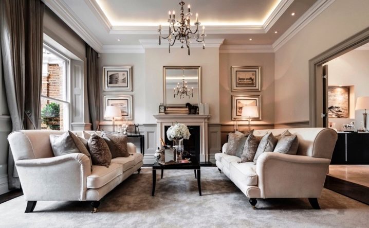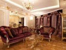 بالنسبة للمباني الكبيرة ، يجب الانتباه إلى النمط الكلاسيكي. الأثاث الضخم ، وفرة من التذهيب ، والقوالب الجصية على الأسقف ، والأقمشة باهظة الثمن ، وألوان الظلال العميقة ستضيف راحة فريدة وأنيقة. الباروك مناسب لمحبي الفخامة والرقي. ظلال من اللون العنابي والزمرد والشوكولاتة المركزة مع تركيبات ذهبية لامعة لن تترك أي شخص غير مبال.