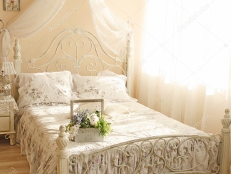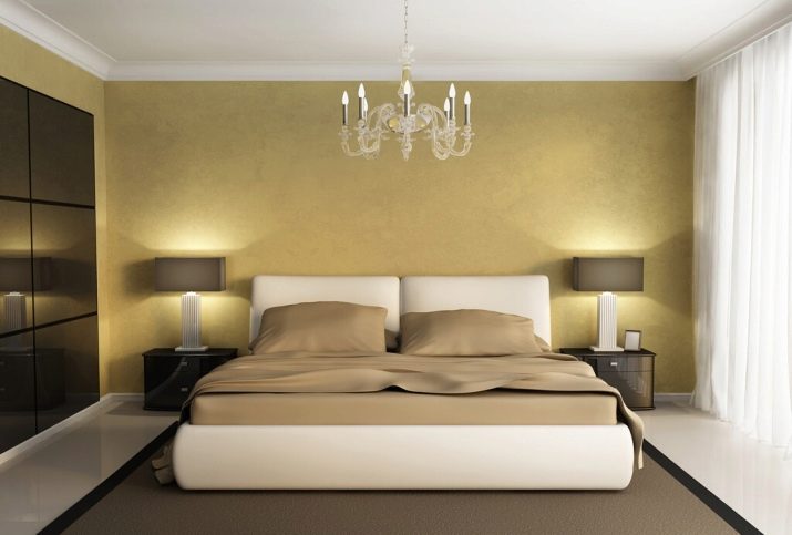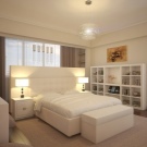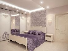 - يمكن أن يصبح السرير مركز التناظر. يمكن وضع بقية الأثاث على مسافة متساوية منه: طاولات بجانب السرير ، وخزائن ملابس ، وشمعدانات جدارية.